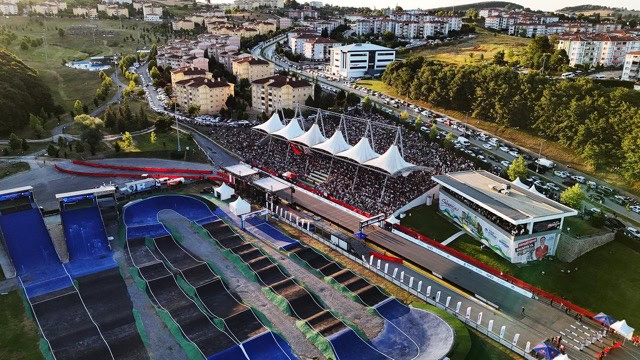 Dünyanın en iyi bisikletçileri 600 metrelik tek turdan oluşan; dik yokuş, duvar sürüşü, tahta rampa, eğimli köprü ve zorlu tepe noktasıyla Avrupa’nın en teknik parkurlarından biri olarak kabul edilen Ayçiçeği Bisiklet Vadisi’nin zorlu etabında kıyasıya mücadele etti.