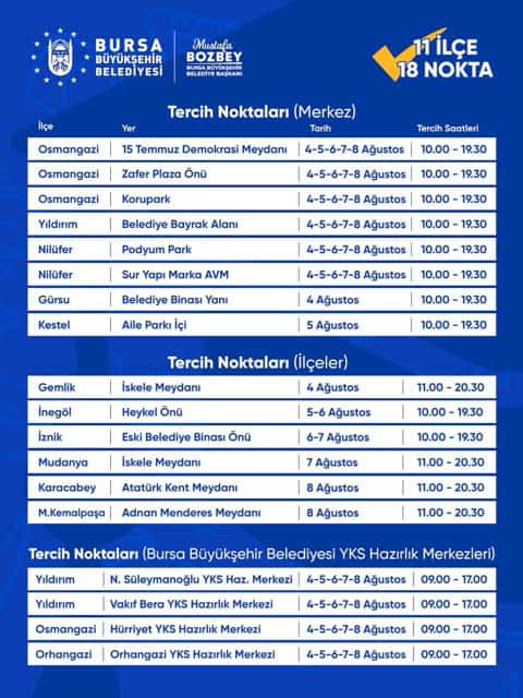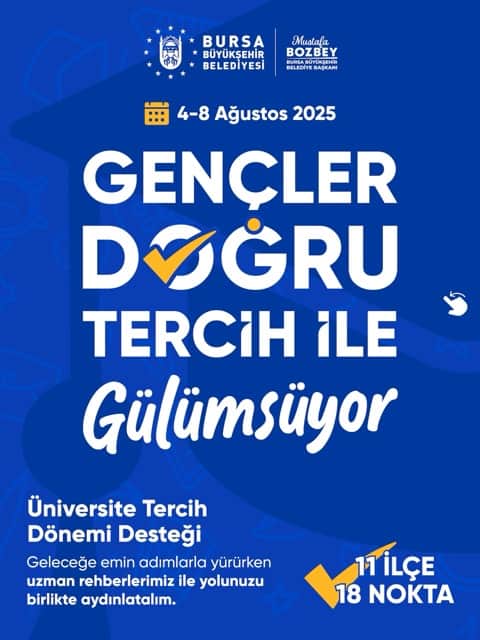 BURSA – Bursa’da eğitimden sanata, spordan kültüre kadar her alanda gençleri destekleyen Bursa Büyükşehir Belediyesi, üniversite sınavına girenlerin en doğru tercihi yapabilmesi için 11 ilçede oluşturulacak 18 farklı noktada ücretsiz danışmanlık desteği verecek.