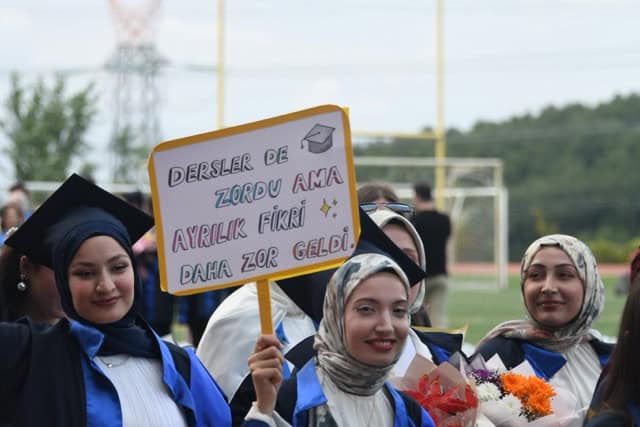 Mezuniyet töreni, öğretmen yeminleri ve ardından geleneksel kep atma seremonisiyle sona erdi.