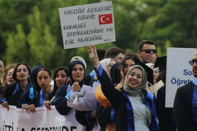 Sakarya Üniversitesi (SAÜ) Eğitim Fakültesi, 2024–2025 Eğitim-Öğretim Yılı mezuniyet programını büyük bir coşkuyla gerçekleştirdi. Törende, eğitim lideri olarak yetişen genç öğretmen adayları mezuniyet heyecanı yaşadı.