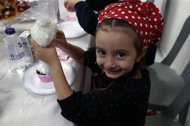Etkinlik kapsamında Pafuli Kreş ve Anaokulu öğrencileri, Donatım Mutfak’ta gerçekleştirilen cupcake süsleme atölyesine katıldı. Burada aşçı önlükleri ve şapkalarını giyen minikler, kendi cupcake’lerini rengârenk süslemelerle hazırlayarak mutfak kültürünü deneyimledi.