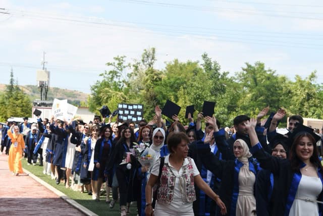 Mezuniyet törenine Rektör Yardımcısı Prof. Dr. Halit Yaşar başta olmak üzere, bölüm başkanları, akademisyenler ve çok sayıda veli katıldı. Program, mezuniyet yemini ve ardından kep atma töreni ile sona erdi.