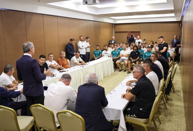 Teknik Direktör İrfan Buz da ziyaretten duyduğu memnuniyeti dile getirerek, “Sağlıklı ve verimli bir kamp dönemi geçirdik. Hazırlık maçlarıyla eksiklerimizi tamamlayacağız. Başkanımızın burada olması bizlere moral verdi. Empati gücünüz ve desteğiniz bizim için çok değerli” şeklinde konuştu.